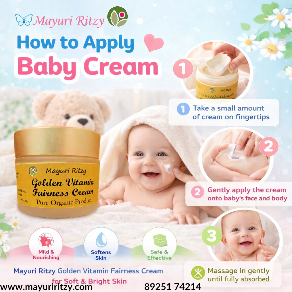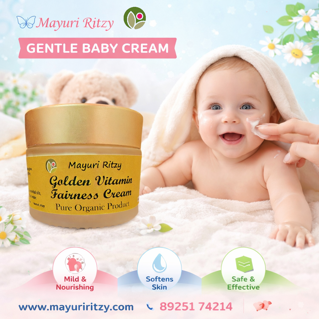 Mayuri Ritzy Baby Natural Cream is a gentle, plant-based formula that provides long-lasting hydration and nourishment for your baby’s delicate skin. It helps keep the skin soft, smooth, and healthy with natural extracts.