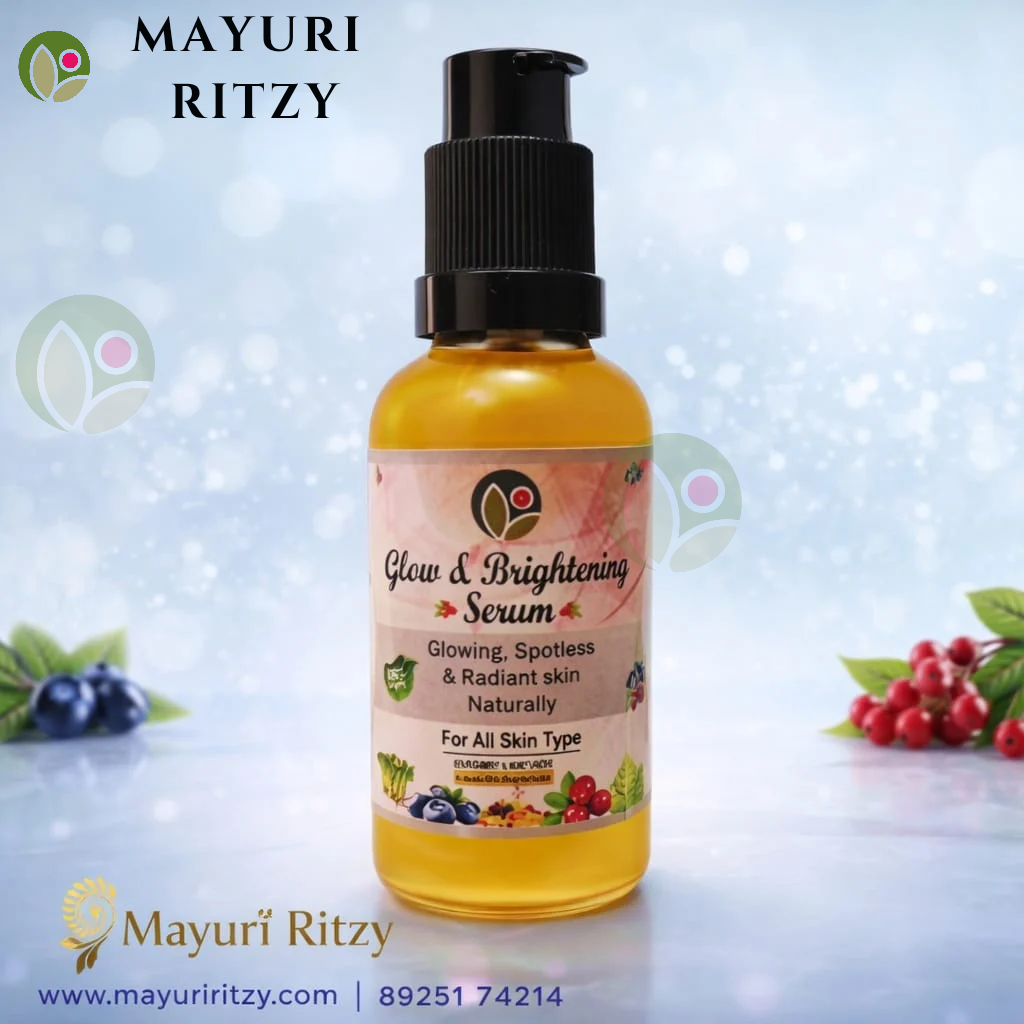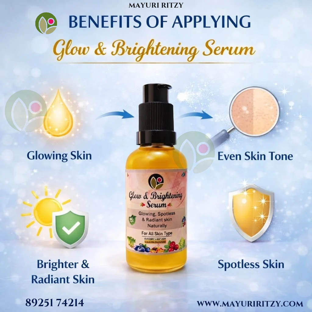 Mayuri Ritzy Glow & Brightening Serum is a nourishing skincare formula designed to enhance your skin’s natural glow and brightness. It helps improve dull and uneven skin tone while keeping the skin soft, smooth, and hydrated.
