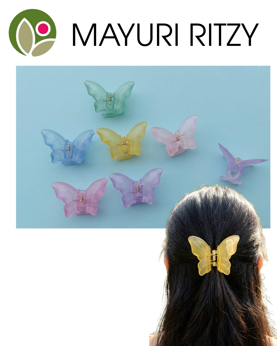 Cute translucent butterfly-shaped hair claw clips in soft pastel shades for a playful, trendy look. Lightweight with a secure grip, perfect for everyday styling and casual outings