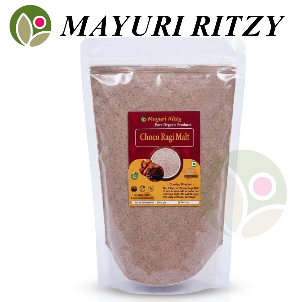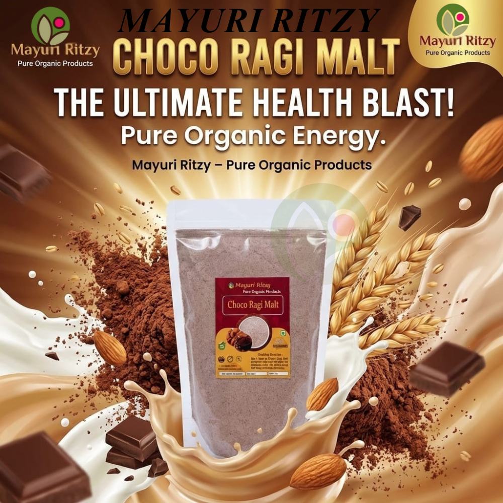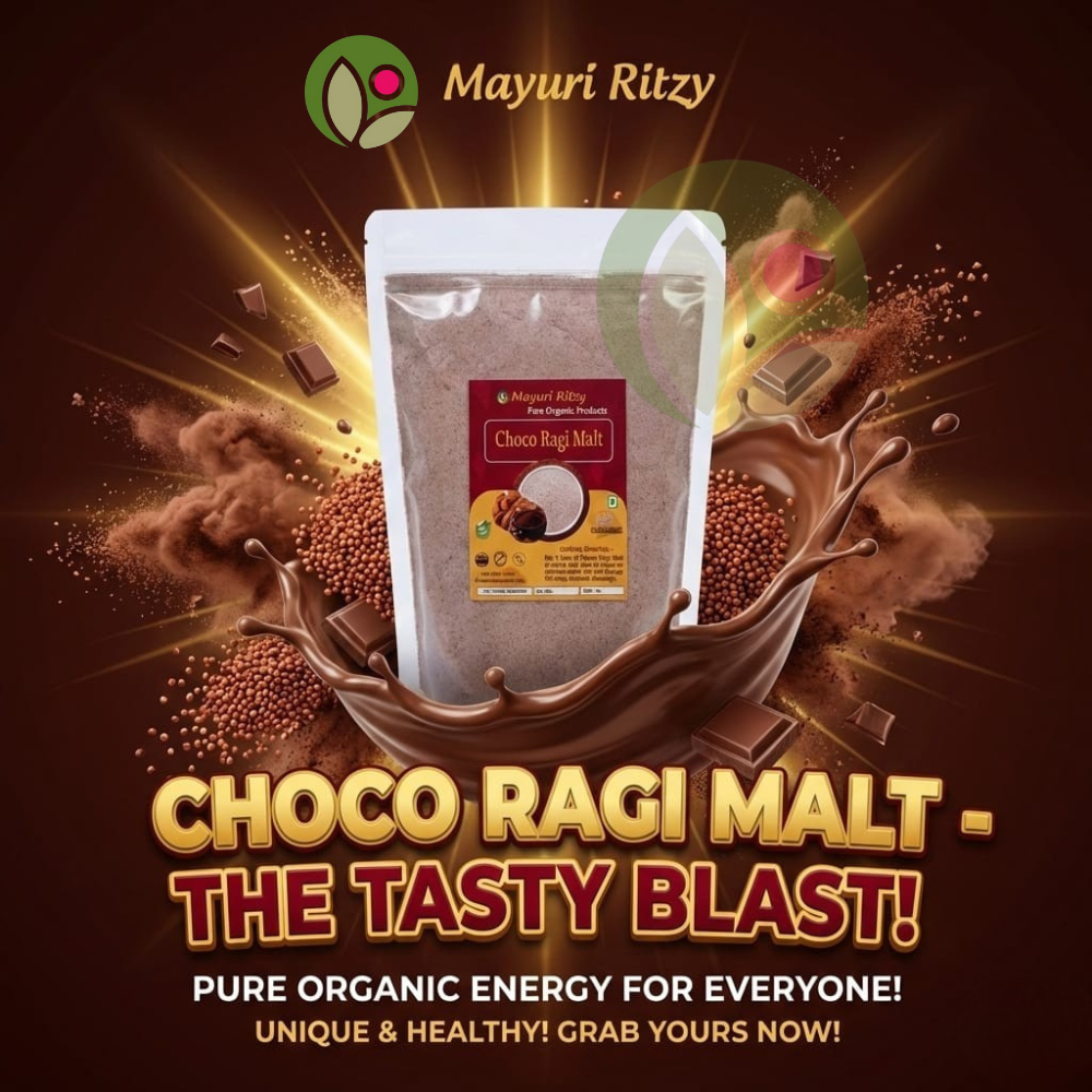Mayuri Ritzy Choco Ragi Malt is a delicious and nutritious health drink made from high-quality ragi blended with natural cocoa flavor. Rich in calcium, iron, protein, and dietary fiber, it helps support strong bones, sustained energy, and healthy digestion. The chocolate taste makes it kid-friendly while remaining free from refined sugar and harmful additives. Naturally gluten-free and easy to digest, this wholesome malt keeps you full for longer, making it ideal for breakfast or an evening drink. Suitable for children and adults, Mayuri Ritzy Choco Ragi Malt is perfect for daily nutrition, immunity support, and overall well-being.