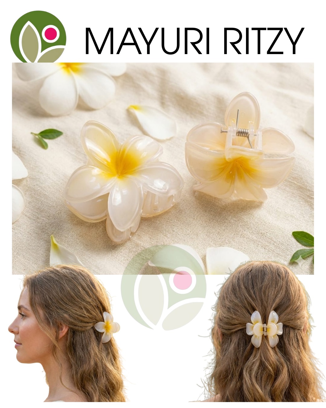 Elegant flower-shaped hair claw clip with a soft translucent finish and vibrant center for a fresh, graceful look. Secure grip and lightweight design make it perfect for everyday wear and summer styling.