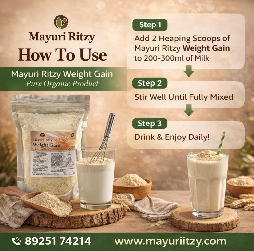 Mayuri Ritzy Herbal Weight Gain Supplement is a natural health mix designed to support healthy weight gain and overall wellness. Made with nutritious ingredients, it helps boost energy, improve strength, and support body nourishment in a natural way.