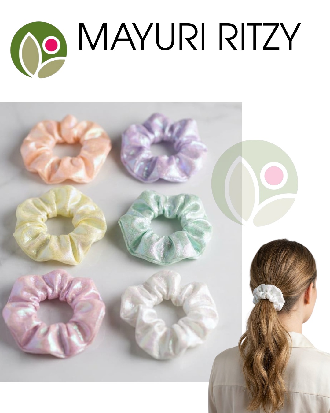 Description: Soft, glossy satin scrunchies in pastel iridescent shades that add a chic touch to any hairstyle. Gentle on hair, reduces breakage, and perfect for daily wear or special occasions.