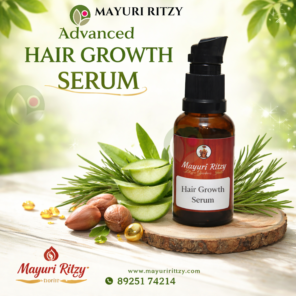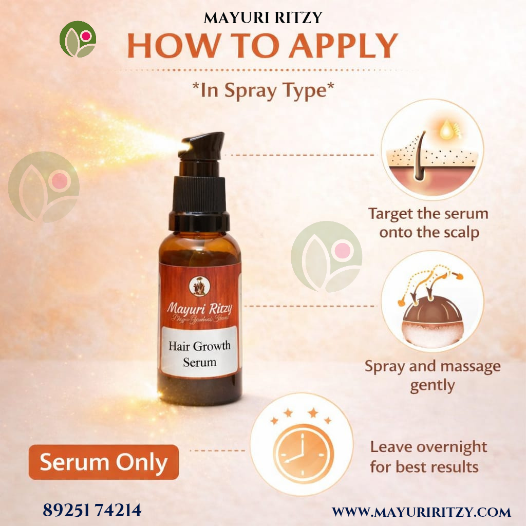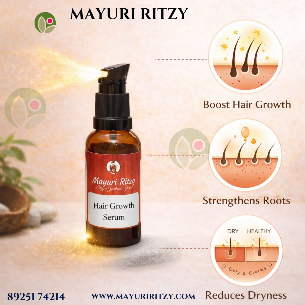 Mayuri Ritzy Natural Hair Growth Serum is a nourishing hair care formula designed to support stronger and healthier hair. Enriched with Red Onion Oil and Amla Extract, it helps strengthen hair roots, reduce hair fall, and promote natural hair growth.