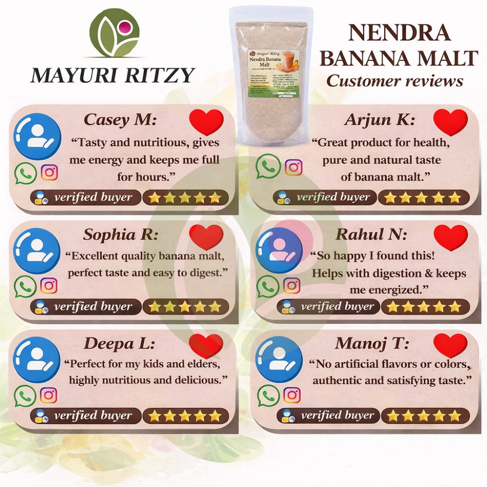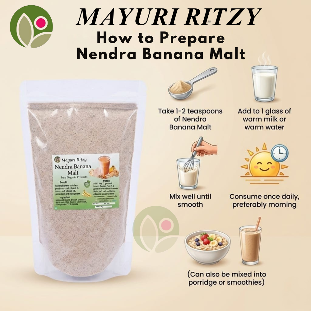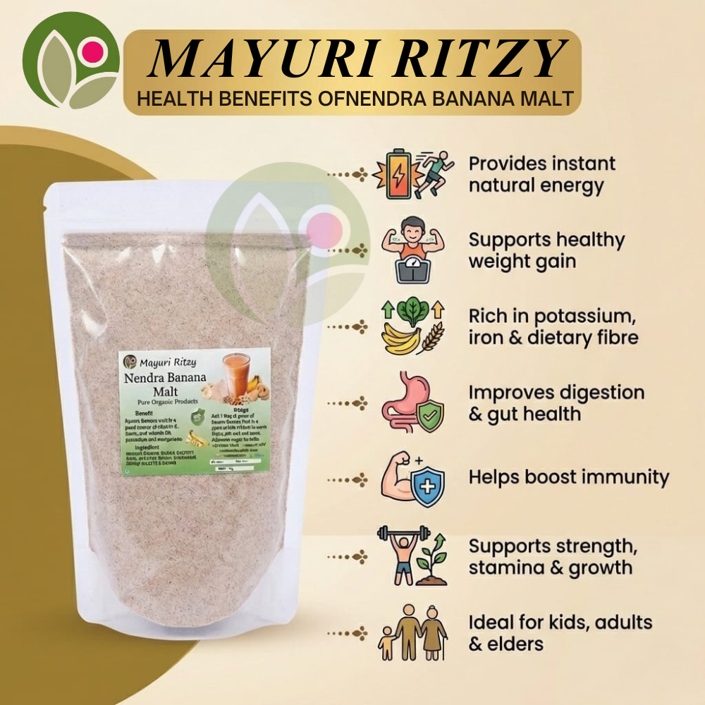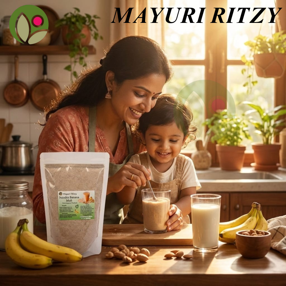 Mayuri Ritzy Nendran Banana Malt is a nutritious and natural health mix made from high-quality Nendran bananas. It helps support healthy growth, improve energy levels, and provide essential nutrients for overall wellness.