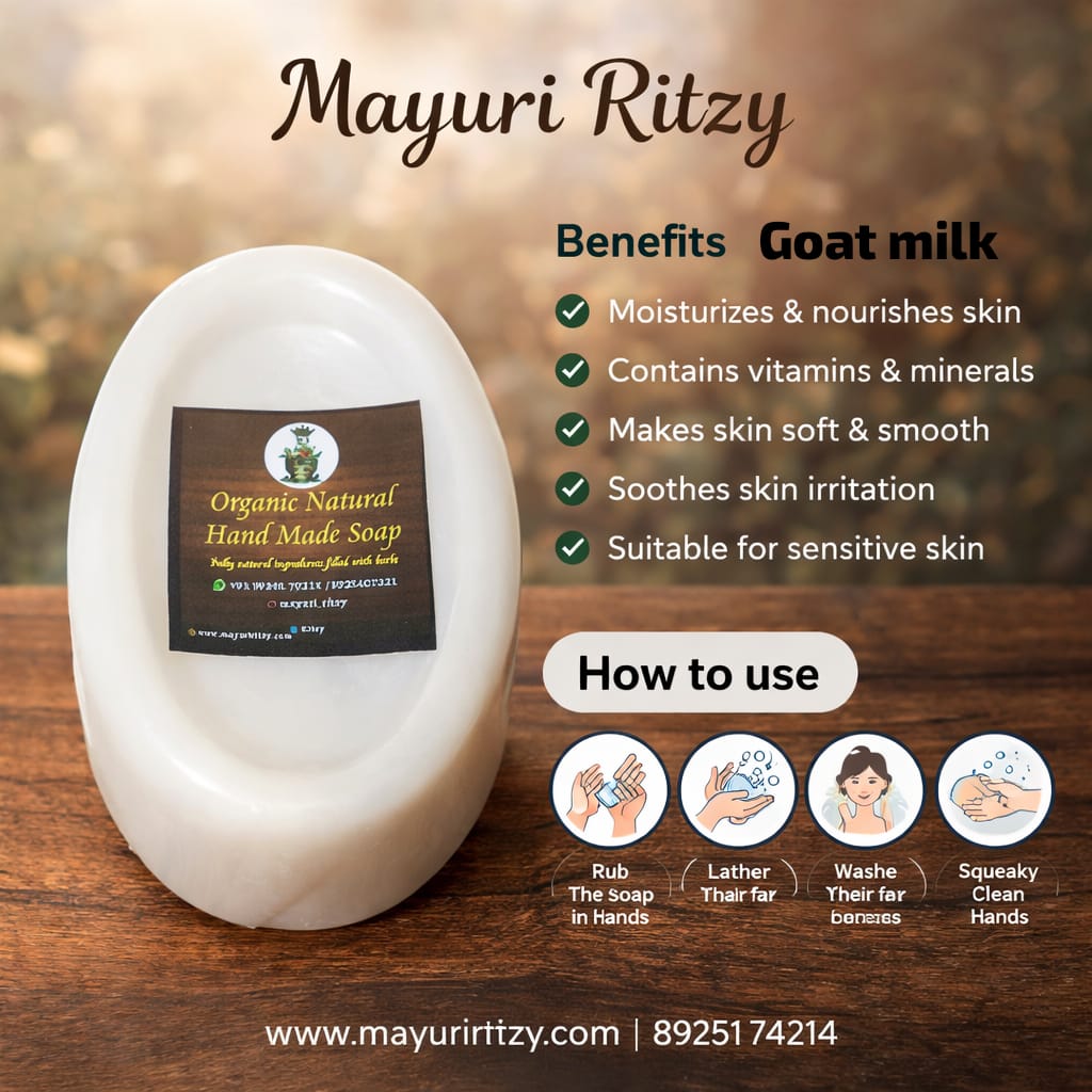 Celebrate self-care with the Mayuri Ritzy Women’s Day Beauty Gift Combo. This elegant set includes a handcrafted organic soap, nourishing lip balm, and refreshing kajal—designed to cleanse, hydrate, and enhance your natural beauty. Thoughtfully packed in a beautiful gift box, it’s the perfect blend of skincare and everyday elegance.